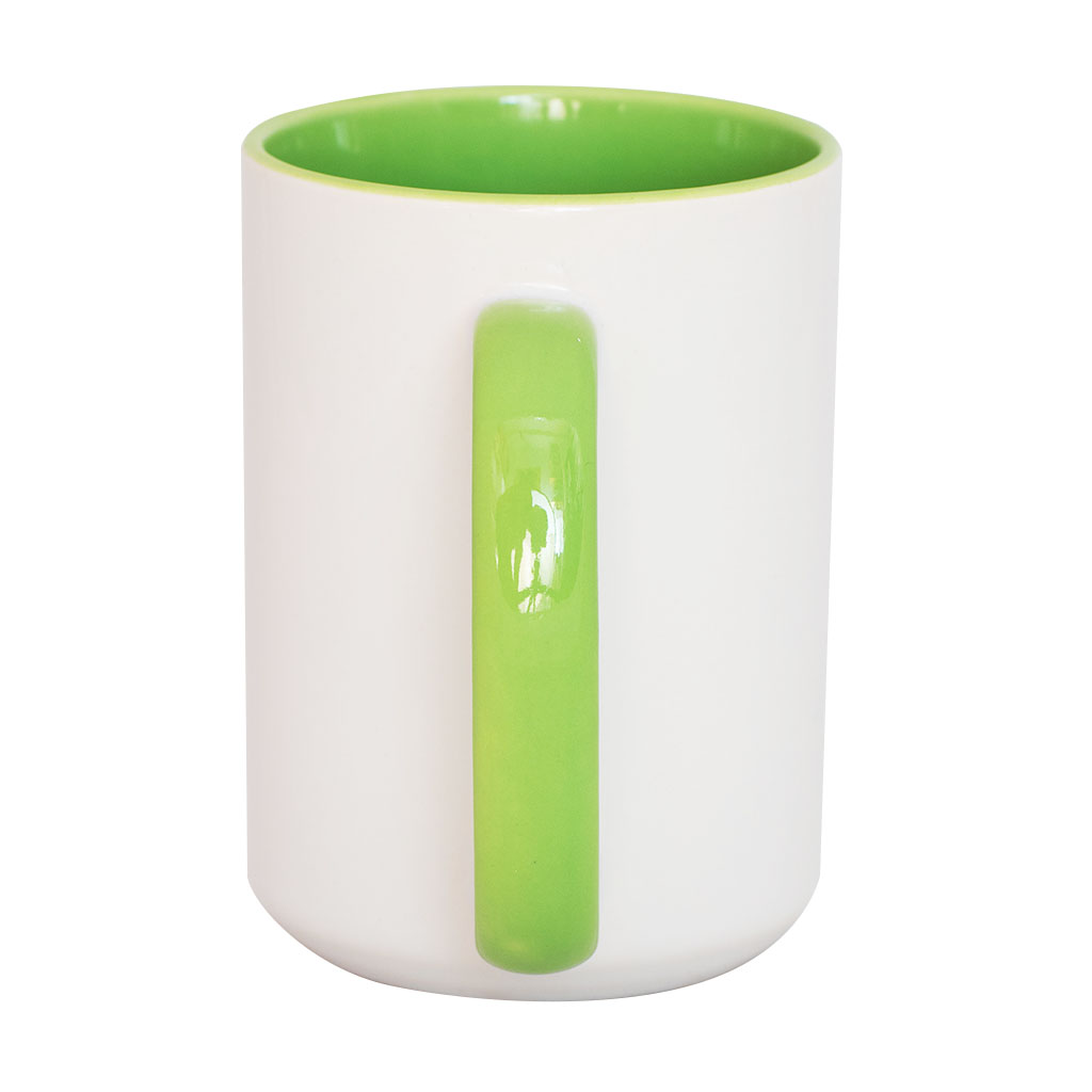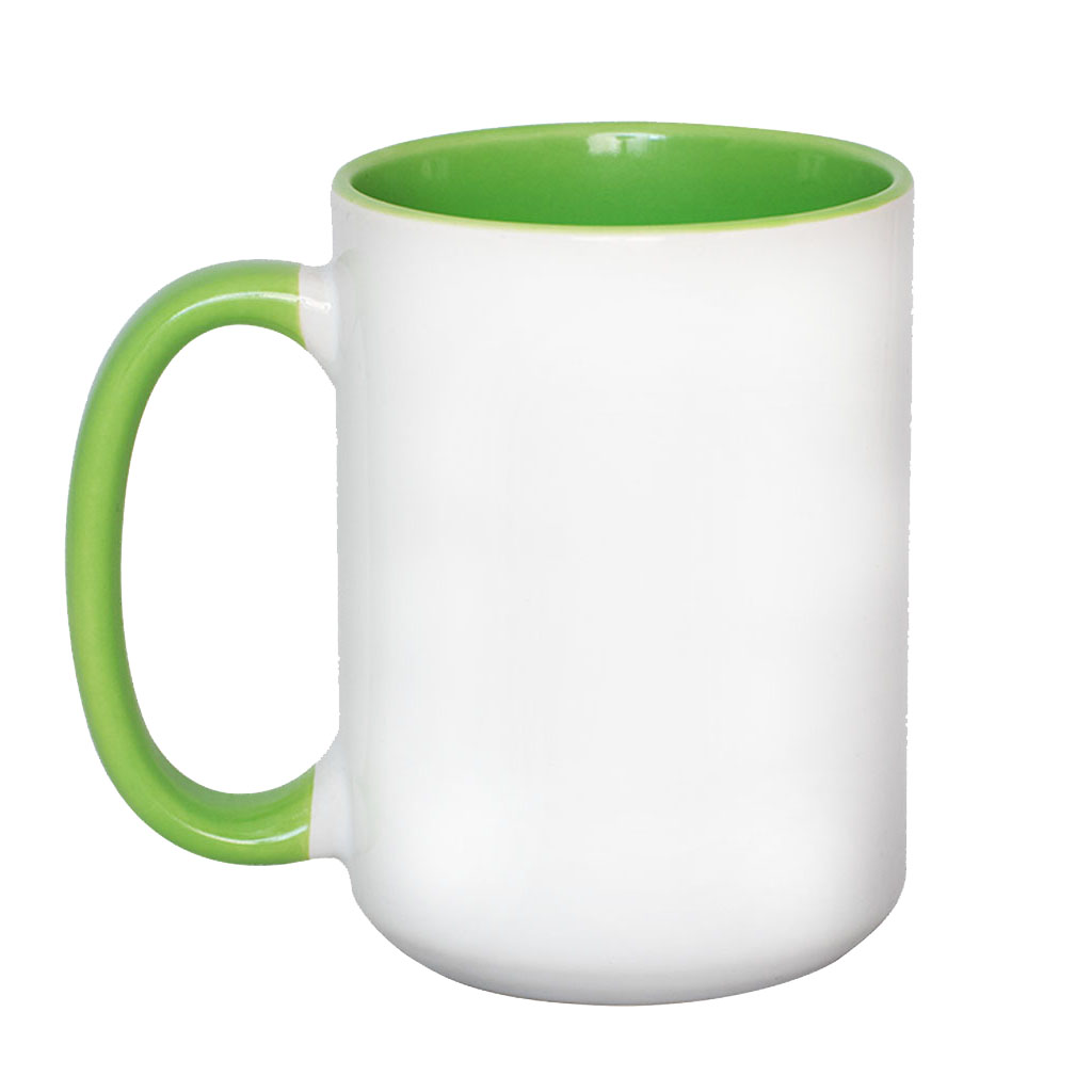 Bílý keramický 400 ml hrnek s vybarveným vnitřkem a ouškem dle vlastního výběru. Lze potisknout levou i pravou stranu, nebo obě strany najednou. Je vhodný jako originální dárek k narozeninám či k Vánocům, pro partnera, rodiče nebo prarodiče, například s fotkou a vzkazem, popř. jako reklamní předmět.